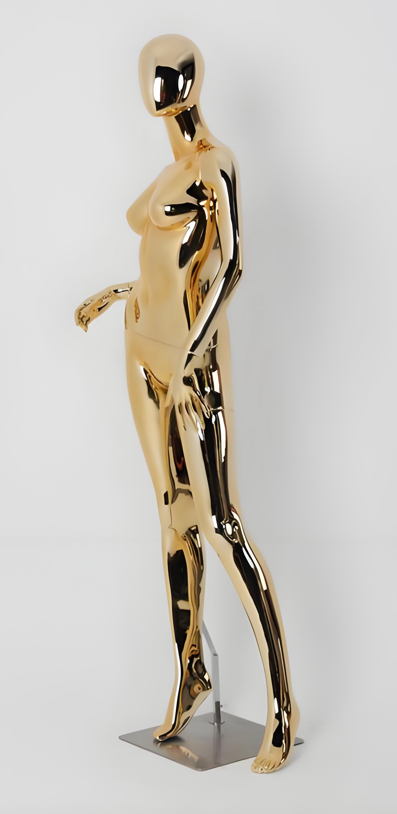 La metalización al vacío le otorga a los maniquíes un brillo y una reflexión de luz únicos, lo que los hace destacar en cualquier entorno de exposición o tienda. La capa metálica puede tener diferentes tonos, desde el plateado brillante hasta el dorado cálido, lo que permite adaptarse a diversos estilos y conceptos de diseño.